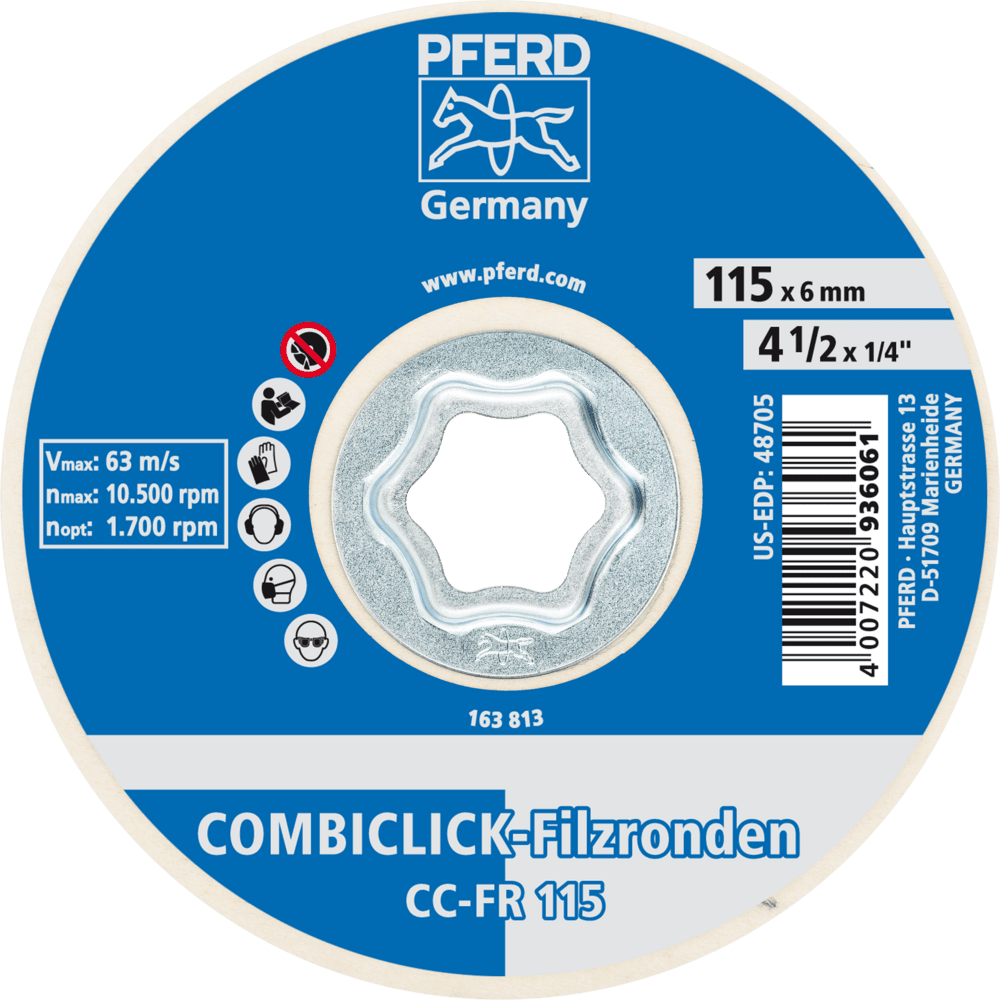 Produktinformationen "PFERD COMBICLICK Filzronden CC-FR Ø 115 mm für Vor-und Hochglanzpolitur mit Winkelschleifer"