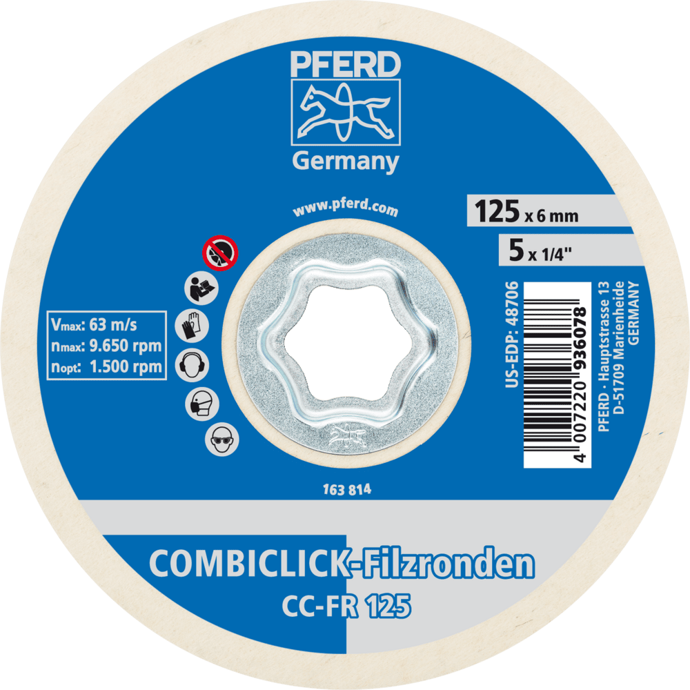 Produktinformationen "PFERD COMBICLICK Filzronden CC-FR Ø 125 mm für Vor-und Hochglanzpolitur mit Winkelschleifer"