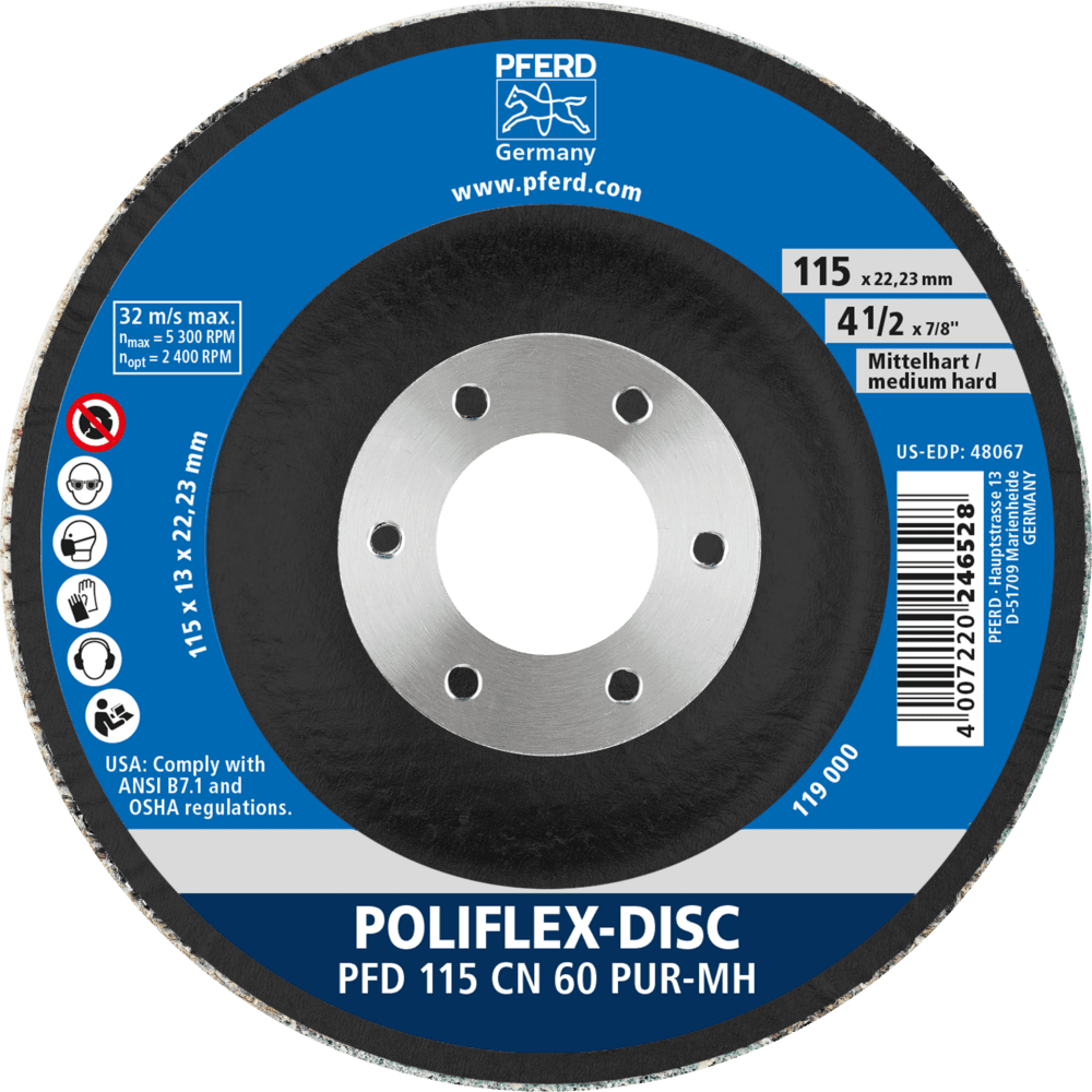 Produktinformationen "PFERD Poliflex Disc PFD Ø 115x14 mm Bohrung-Ø 22,23 mm Bindung PUR Mittelhart SIC60"