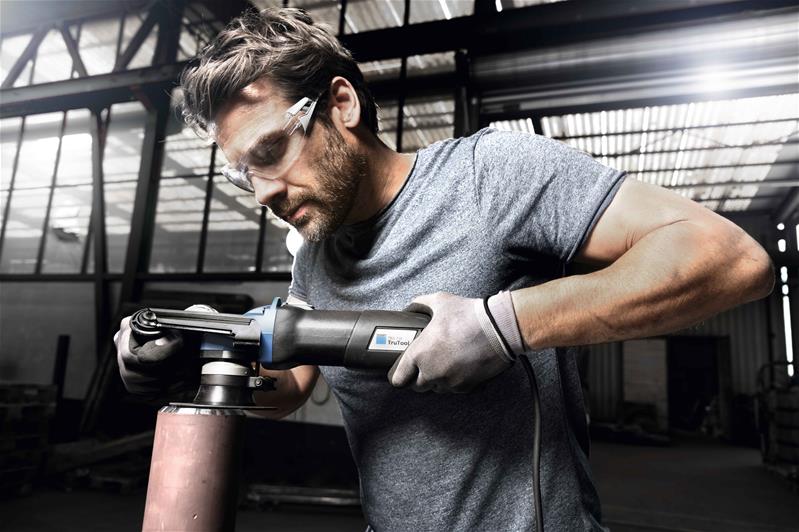 Mit dem TruTool TKA 500 versehen Sie Bauteile mit sauberen Sichtkanten, brechen scharfe Kanten, bringen einen Radius von 2, 3 oder 4 mm an oder bereiten eine Schweißnaht vor. Dies in unterschiedlichsten Winkellagen von 0° - 60° und in nur einem Arbeitsgang bis 5 mm. Bedingt durch den optionalen Auflageteller ist selbst das Arbeiten in engsten Platzverhältnissen kein Problem. Dabei bearbeiten Sie gerade Bleche, Innenausschnitte, Kurven und Rohre. Die Einstellung der Fasenlänge erfolgt stufenlos – im ersten Arbeitsgang können Sie im Baustahl Fasen bis zu 5 mm, mit einem zweiten Arbeitsgang bis 7 mm herstellen. Der Halte- und Führungsgriff in Kombination mit dem idealen Maschinenumfang ermöglicht Ihnen eine ergonomische Maschinenhandhabung.